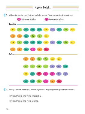 1. Wskazując kolejne nuty, śpiewaj melodię hymnu Polski nazwami solmizacyjnymi.