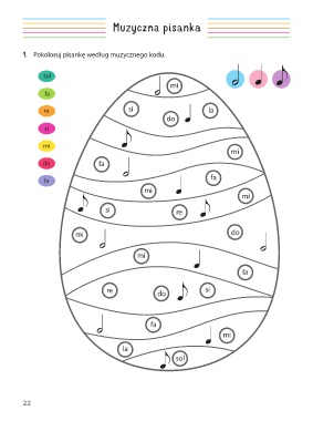 Muzyczna pisanka 1. Pokoloruj pisankę według muzycznego kodu. sol mi fa re si la do si mi mi do fa fa la mi mi si re mi do mi la re do si fa mi la sol 22
