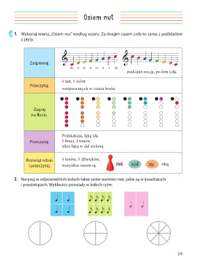 1. Wykonaj wiersz „Osiem nut” według wzoru. Za drugim razem zrób to samo z podkładem