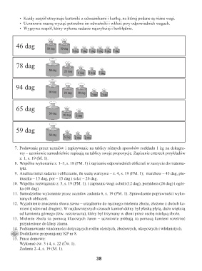 • Każdy zespół otrzymuje kartoniki z odważnikami i kartkę, na której podane są różne wagi.