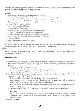 Pomoce: barometr, plastikowa butelka, materiały do budowy barometru, taśma klejąca, miseczka z wodą,