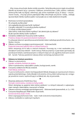 • Zabawa ruchowa rozwijająca spostrzegawczość – Kolorowe bańki (przewodnik, cz. 3, s. 145).