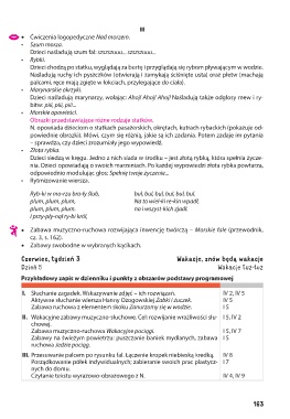II. Wakacyjne zabawy muzyczno-słuchowe. Cel: rozwijanie wrażliwości słu- I 5, IV 2