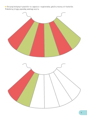 Dotykaj kolejnych pasków na zapasce i wypowiadaj głośny nazwy ich kolorów. Pokoloruj drugą zapaskę według wzoru. 7