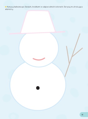 Narysuj bałwana po śladach, kredkami w odpowiednich kolorach. Dorysuj mu brakujące elementy. 10