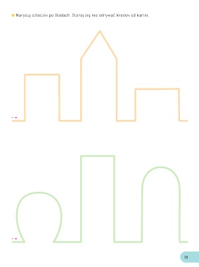 Narysuj szlaczki po śladach. Staraj się nie odrywać kredek od kartki. 15
