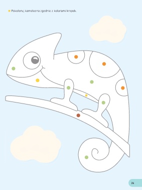 Pokoloruj kameleona zgodnie z kolorami kropek. 26
