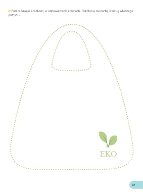 Połącz kropki kredkami w odpowiednich kolorach. Pokoloruj ekotorbę według własnego pomysłu. EKO 27