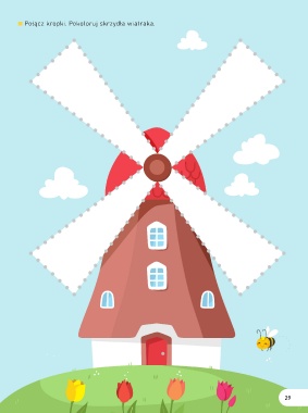 Połącz kropki. Pokoloruj skrzydła wiatraka. 29