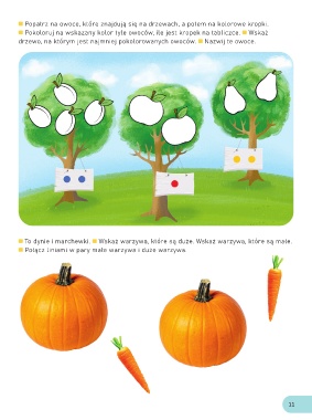 Popatrz na owoce, które znajdują się na drzewach, a potem na kolorowe kropki.