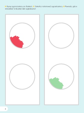 Rysuj sygnalizatory po śladach. Dokończ kolorować sygnalizatory. Powiedz, gdzie widziałeś/ widziałaś taki sygnalizator. 6