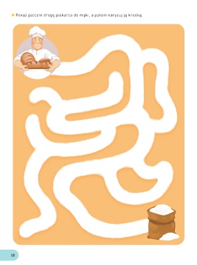 Pokaż palcem drogę piekarza do mąki, a potem narysuj ją kredką. 18