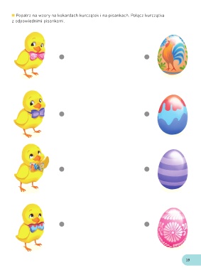 Popatrz na wzory na kokardach kurczątek i na pisankach. Połącz kurczątka z odpowiednimi pisankami. 19