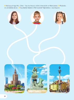 Narysuj drogę Poli, Olka i Tosi do miejsc, które odwiedzili w Warszawie. Powiedz, co zwiedziły dzieci. Czy byłeś/ byłaś w Warszawie? Opowiedz o tej wizycie. 30