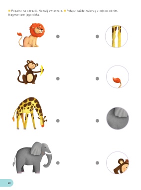 Popatrz na obrazki. Nazwij zwierzęta. Połącz każde zwierzę z odpowiednim fragmentem jego ciała. 40
