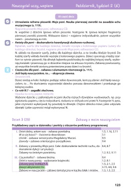 II. Zabawy z piosenką Moja pani. Cele: doskonalenie techniki ruchu, do- 8.4, 8.7