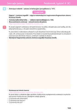 • Jesienią najbardziej lubię… – zabawa wprowadzająca (s. 158).