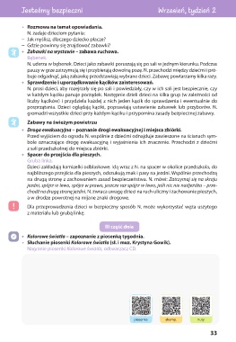bole oznaczające drogę ewakuacyjną i wyjaśnienia ich znaczenie. Przechodzi z dziećmi