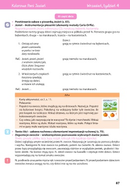 • Powtórzenie zabaw z piosenką Jesień (s. 83).