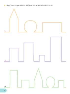 Narysuj szlaczki po śladach. Staraj się nie odrywać kredek od kartki. 30