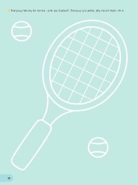 Narysuj rakietę do tenisa i piłki po śladach. Dorysuj tyle piłek, aby razem było ich 4. 38