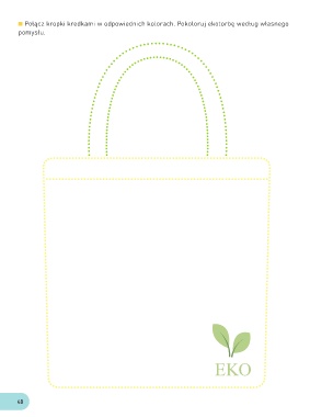 Połącz kropki kredkami w odpowiednich kolorach. Pokoloruj ekotorbę według własnego pomysłu. EKO 48