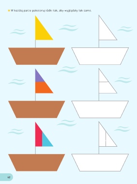 W każdej parze pokoloruj łódki tak, aby wyglądały tak samo. 62