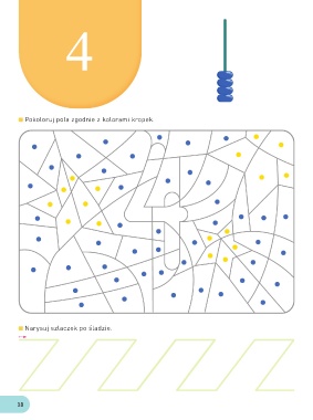4 Pokoloruj pola zgodnie z kolorami kropek. Narysuj szlaczek po śladzie. 18