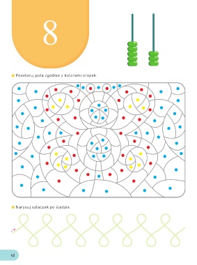 8 Pokoloruj pola zgodnie z kolorami kropek. Narysuj szlaczek po śladzie. 42