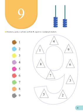 9 Pokoloruj pola z cyframi od 1 do 9, zgodnie z podanym kodem. 1 4 2 1 9 3 4 8 6 5 6 7 7 3 8 9 5 2 45
