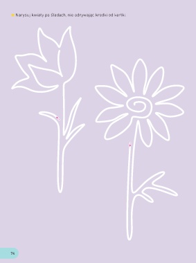 Narysuj kwiaty po śladach, nie odrywając kredki od kartki. 74