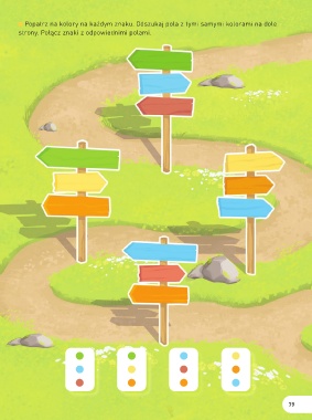 Popatrz na kolory na każdym znaku. Odszukaj pola z tymi samymi kolorami na dole strony. Połącz znaki z odpowiednimi polami. 79