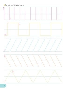 Narysuj szlaczki po śladach. 8