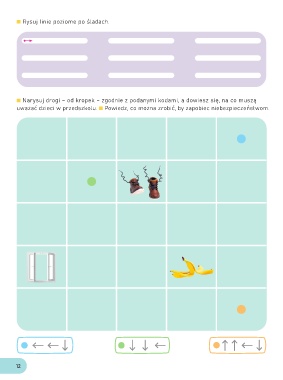 Rysuj linie poziome po śladach. Narysuj drogi – od kropek – zgodnie z podanymi kodami, a dowiesz się, na co muszą uważać dzieci w przedszkolu. Powiedz, co można zrobić, by zapobiec niebezpieczeństwom. 12