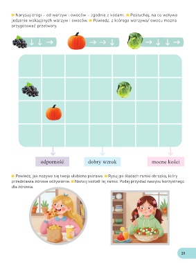 Narysuj drogi – od warzyw i owoców – zgodnie z kodami. Posłuchaj, na co wpływa