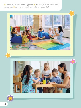 Opowiedz, co widzisz na zdjęciach. Powiedz, kim dla ciebie jest nauczyciel. Jakie cechy powinien posiadać nauczyciel? 42