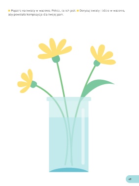 Popatrz na kwiaty w wazonie. Policz, ile ich jest. Dorysuj kwiaty i liście w wazonie, aby powstała kompozycja dla twojej pani. 49