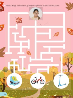 Narysuj drogę, a dowiesz się, jaki sport najchętniej uprawia jesienią Diana. 56