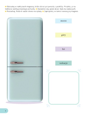 lodówce według własnego pomysłu. Zastanów się, gdzie dzieci były na wakacjach.