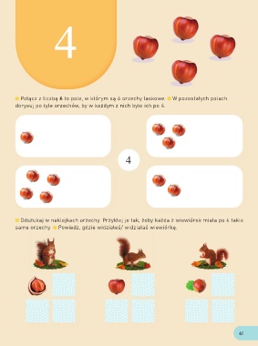 Połącz z liczbą 4 to pole, w którym są 4 orzechy laskowe. W pozostałych polach