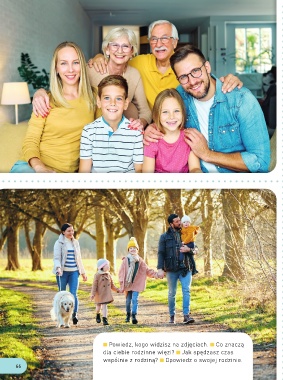 Powiedz, kogo widzisz na zdjęciach. Co znaczą dla ciebie rodzinne więzi? Jak spędzasz czas wspólnie z rodziną? Opowiedz o swojej rodzinie. 66