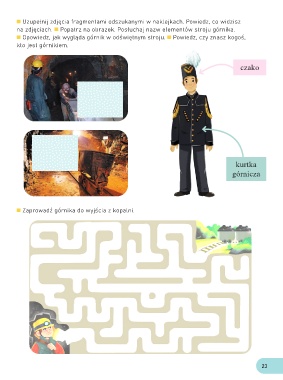 na zdjęciach. Popatrz na obrazek. Posłuchaj nazw elementów stroju górnika.