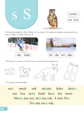Pokoloruj te rysunki, których nazwy rozpoczynają się głoską s.