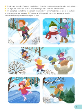 Popatrz na obrazki. Powiedz, czy każde z dzieci przestrzega zasad bezpiecznej zabawy.