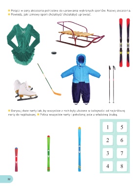 narty do najdłuższej. Policz wszystkie narty i pokoloruj pole z właściwą liczbą.