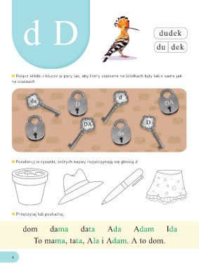 Pokoloruj te rysunki, których nazwy rozpoczynają się głoską d.
