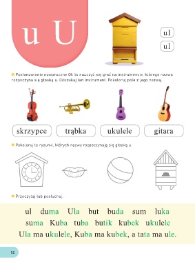 rozpoczyna się głoską u. Odszukaj ten instrument. Pokoloruj pole z jego nazwą.