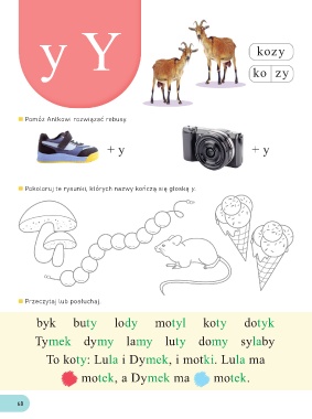 Pokoloruj te rysunki, których nazwy kończą się głoską y.