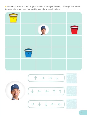 Zaprowadź listonosza do skrzynek zgodnie z podanymi kodami. Odszukaj w naklejkach te same zdjęcia skrzynek i przyklej je przy odpowiednich kodach. 77