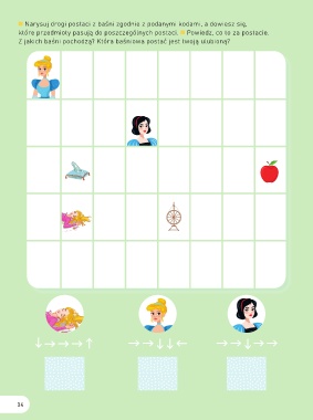 Narysuj drogi postaci z baśni zgodnie z podanymi kodami, a dowiesz się, które przedmioty pasują do poszczególnych postaci. Powiedz, co to za postacie. Z jakich baśni pochodzą? Która baśniowa postać jest twoją ulubioną? 14
